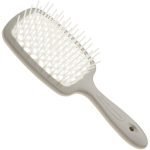 Escova de cabelo modelo raquete com cerdas alongadas ideais para desembaraçar os fios com maciez e suavidade. Adicionalmente proporciona uma secagem mais rápida e uniforme através de uma base com espaçamentos em formato colmeia, que permitem a ideal dissipação do calor. Comprimento: 17,5 cm.