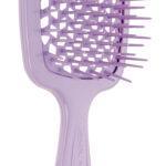 Escova de cabelo modelo raquete com cerdas alongadas ideais para desembaraçar os fios com maciez e suavidade. Adicionalmente proporciona uma secagem mais rápida e uniforme através de uma base com espaçamentos em formato colmeia, que permitem a ideal dissipação do calor. Comprimento: 21,5 cm.