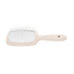 Escova de cabelo modelo raquete com cerdas alongadas ideais para desembaraçar os fios com maciez e suavidade. Adicionalmente proporciona uma secagem mais rápida e uniforme através de uma base com espaçamentos em formato colmeia, que permitem a ideal dissipação do calor. Comprimento: 21,5 cm.