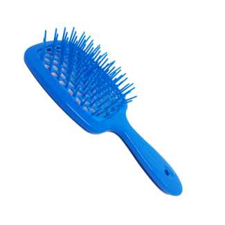 Escova de cabelo modelo raquete com cerdas alongadas ideais para desembaraçar os fios com maciez e suavidade. Adicionalmente proporciona uma secagem mais rápida e uniforme através de uma base com espaçamentos em formato colmeia, que permitem a ideal dissipação do calor. Comprimento: 21,5 cm.