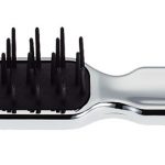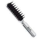 Escova cromada com pinos de silicone. Ideal para desembaraçar e pentear, mantendo a estrutura dos fios. Comprimento: 15,5cm.