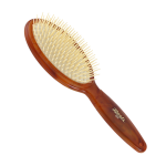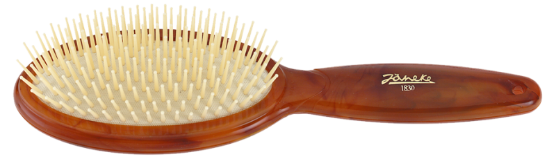 Escova de cabelo “tortoise color” oval. Modelo com pinos de silicone e pontas levemente arredondadas. Facilitam a secagem e o desembaraçar do cabelo, mantendo a estrutura dos fios.
