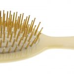 Escova “Horn Color” com pinos dourados e bolinhas em suas extremidades. Ideal para desembaraçar e pentear com suavidade. Indicada para todos os tipos de cabelo.