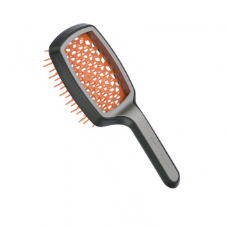 Curvy é uma linha de escovas moderna, caracterizada por uma curvatura no cabo que a torna mais ergonômica, com elegância e sinuosidade. IDEAL PARA CABELOS EXTRA VOLUMOSOS. Escova de cabelo modelo raquete com cerdas alongadas ideais para desembaraçar os fios com maciez e suavidade. Adicionalmente proporciona uma secagem mais rápida e uniforme através de uma base com espaçamentos em formato colmeia, que permitem a ideal dissipação do calor. Comprimento: 21,5 cm.