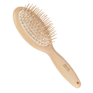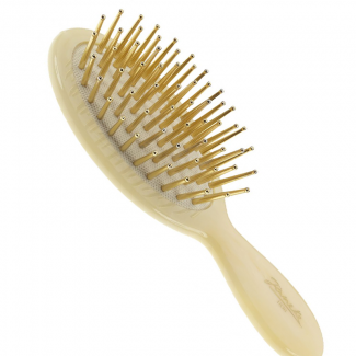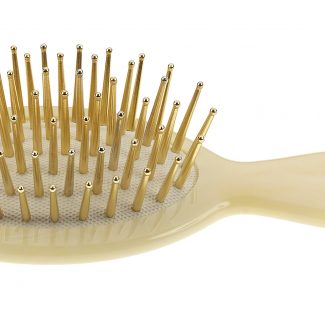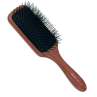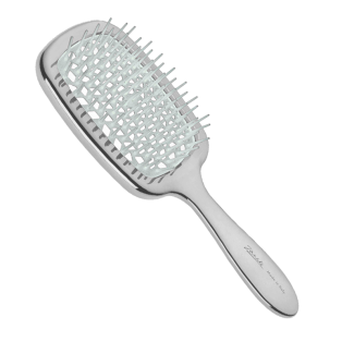 Escova de cabelo modelo raquete com cerdas alongadas, ideais para desembaraçar os fios com maciez e suavidade. Adicionalmente, proporciona uma secagem mais rápida e uniforme por meio de uma base com espaçamentos em formato de colmeia, que permitem a ideal dissipação do calor. Comprimento: 17,5 cm.